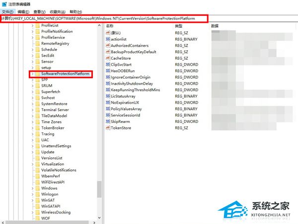 2、在注册表文件中找到【SoftwareProtectionPlatform】文件。