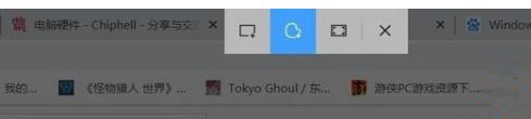 除了在系统里面进行截图之外,不少朋友在浏览网页时也有截图的需求。一般来说浏览器都有截图插件或功能,而Windows系统内置的Edge浏览器也不例外,其任务栏就集成了截图功能,如下。