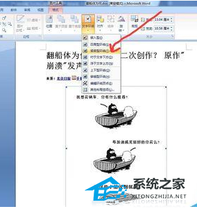 第五步,如果我们不想用嵌入式的图片,想用紧密型环绕式的图片,让文字环绕在图片周围,我们就点击紧密型环绕。