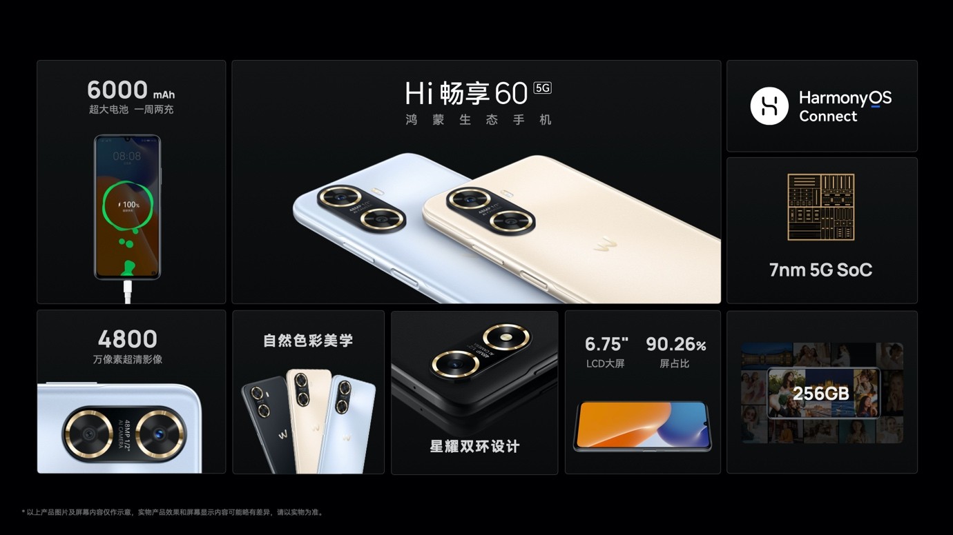 鸿蒙生态手机 Hi畅享60 5G 正式发布,大屏大底大电池,畅快体验,超越期待