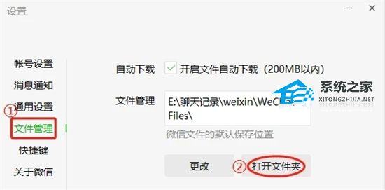 3、进入设置窗口后点击文件管理,点击打开文件夹。