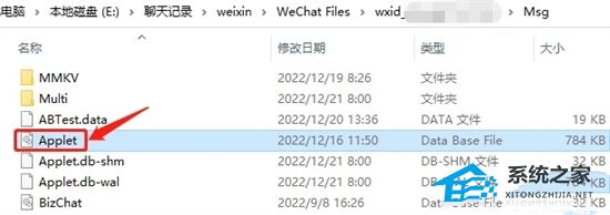 6、在Msg目录里找到Applet.db文件并删除。这个数据库文件存放了小程序的一些信息。