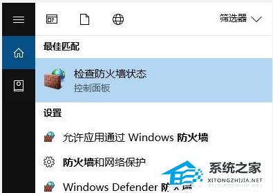 5、按下win+Q 组合件打开搜索款,输入:防火墙,在弹出的选择中选择 检查防火墙状态。