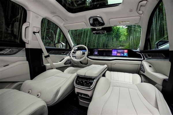 在内饰方面,蓝山DHT-PHEV集科技与豪华于一体。中控台采用一体式智能娱乐屏,贯穿左右,同时保留了一定数量的实体按键。车辆还配备了怀挡、手机无线充电槽、大尺寸增强型HUD、Nappa真皮座椅、隐藏式电动智能空调等配置。大面积采用真皮和木纹装饰,为车内营造出不错的豪华氛围。此外,车辆还配备了流行的皇后座和小桌板等设计元素,明显针对家庭用户的需求进行了考虑。