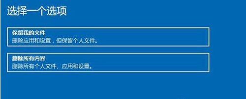 4、会出现两个选项,保留文件和删除所有内容,如果是预装电脑,还有第三个选项还原出厂设置。