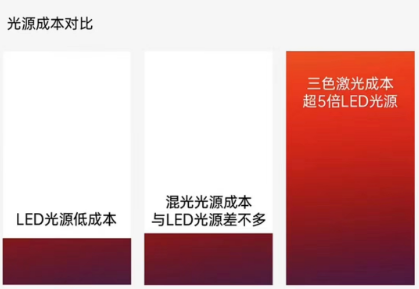 鉴于目前灯泡投影已经逐渐淡出市场, 这里就不对这种传统光源进行过多讨论了,我们将最近热度很高的混光光源技术拿进来,与LED和三色激光光源技术做一个比较。