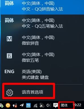 1、点击Win10右下角的输入法提示图标——>弹出的界面中,点击“语言首选项”打开。