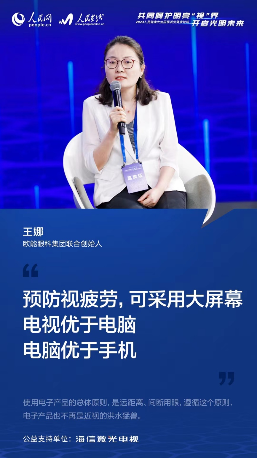 6月6日,第28个全国爱眼日,人民网 “2023国民视觉健康论坛”在京举行。本次论坛以“共同呵护明亮‘视’界 开启光明未来”为主题,来自国家疾控局、国家市场监督管理总局、中国关心下一代工作委员会等政府主管部门的相关领导,眼科领域专家学者,眼健康企业代表等深入交流,共话青少年近视防控与全生命周期眼健康服务,共谋“十四五”时期我国眼健康事业高质量发展。
