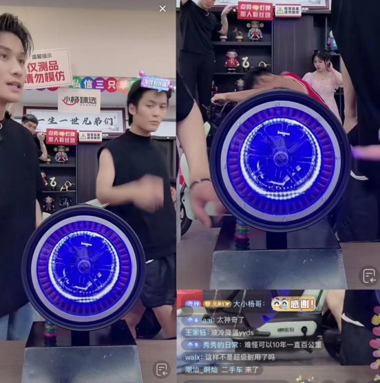 轮胎吸磁铁、成人做车筐、大力摔头盔、载重5个成年人试车,抖音拥有过亿粉丝的主播@疯狂小杨哥在直播间鏖战品牌方绿源,618上演年度疯狂带货直播秀。