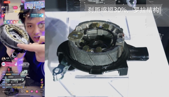 此外,陶瓷刹车作为赛车级别的刹车材料同样被绿源应用于电动自行车上。小杨哥将陶瓷刹车盘与普通刹车盘拆开做对比,陶瓷刹车盘肉眼可见的比普通刹车盘坚固厚实。事实上,陶瓷化复合材料具有很好的耐磨和耐高温特性,陶瓷刹车的耐磨性是普通电动车毂刹的5倍以上。正因如此,绿源刹车部分齿轮结构比普通电动车更省力,这才使主播先前在即将撞到大杨哥时能刹得住、刹得稳。