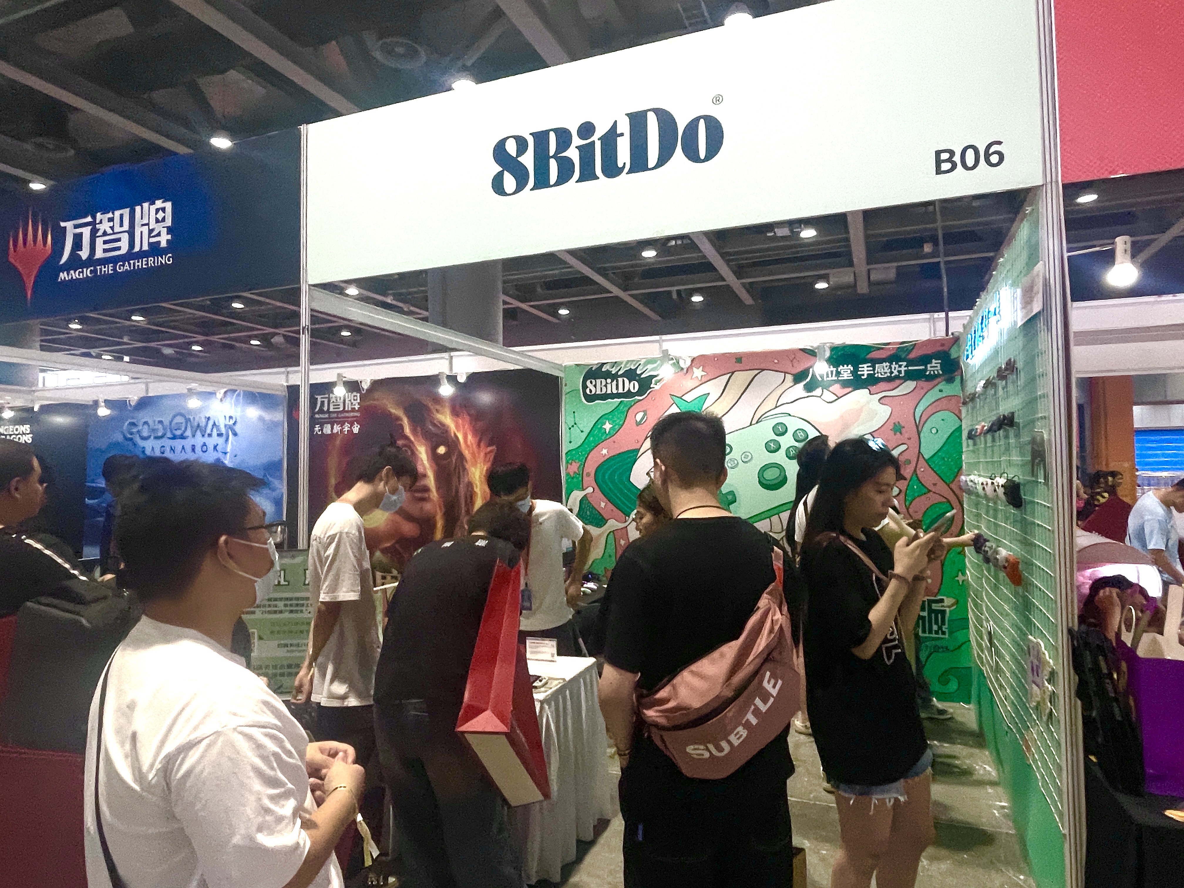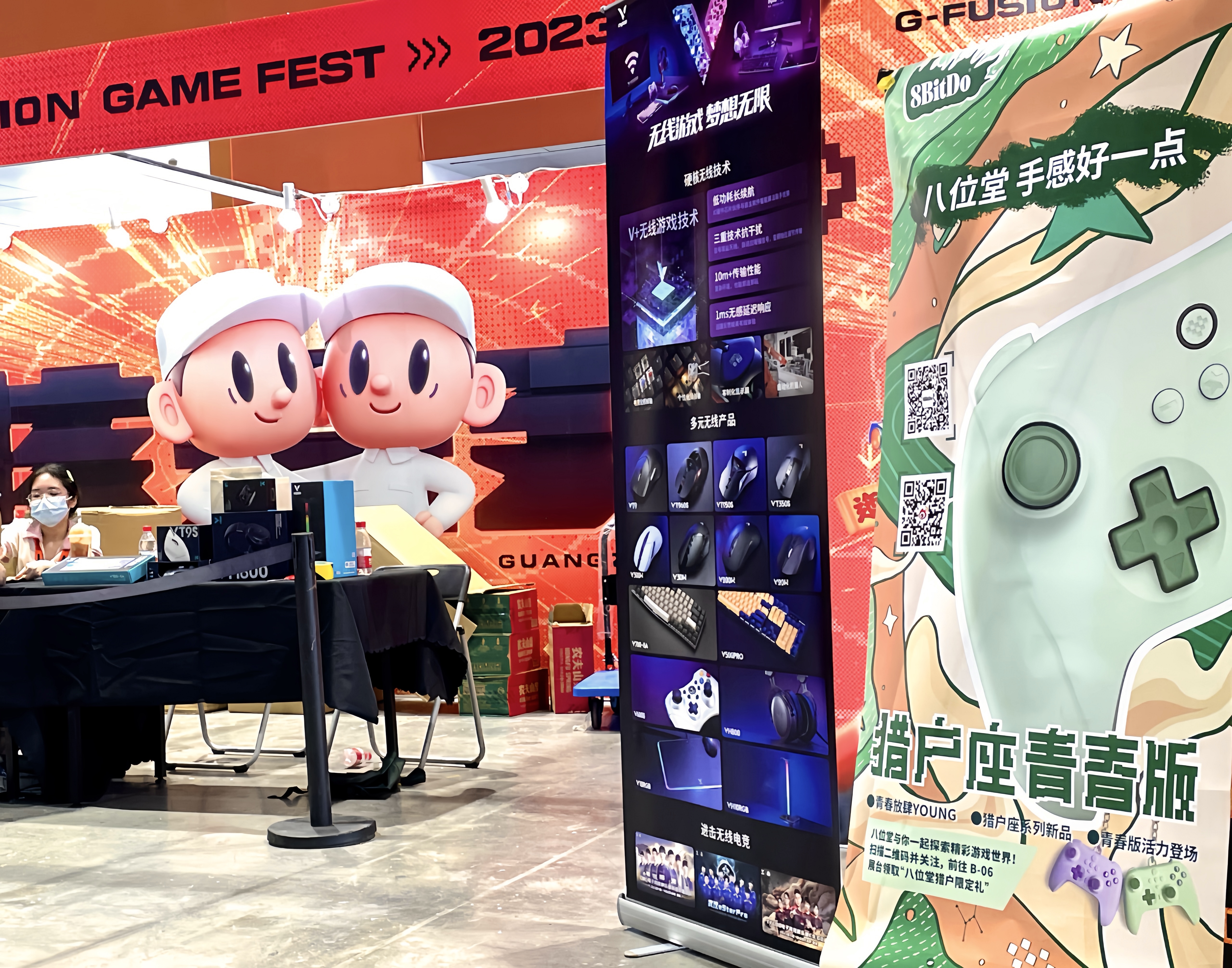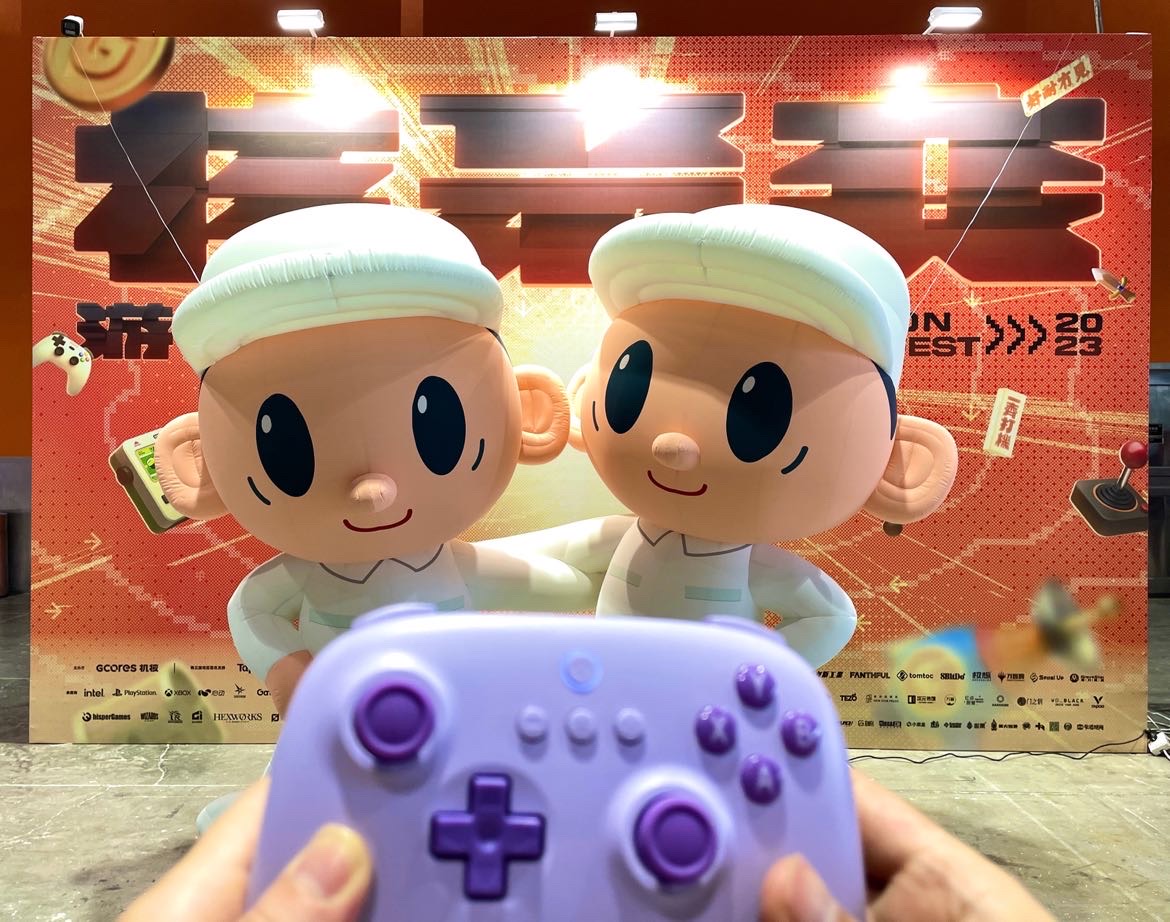 知名游戏外设品牌八位堂(8BitDo)设在【B06】的展位是最热闹的区域之一,展位上展出了八位堂刚刚发布的猎户座青春版手柄,提供了《极限竞速 地平线 5》 《塞尔达传说》 等精彩的游戏的试玩体验,还有参与打卡互动领取限定礼品的活动,吸引了很多游戏爱好者来打卡互动。