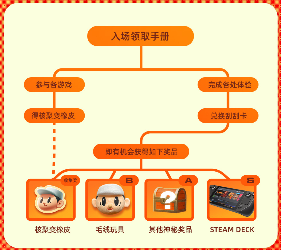 在核聚变的现场,设计了很多充满趣味的游戏挑战、交流互动环节。其中,收集线,通过体验场地内的游戏,获得机组小子纪念品,并随机解锁机组小子的“限定配件”,集齐所有形象,还可拼凑出全套机组小子纪念品。奖品线,则在完成游戏体验后获得一枚盖章,完成指定数量体验,可以兑换一张刮刮卡,获得不同级别的奖品。