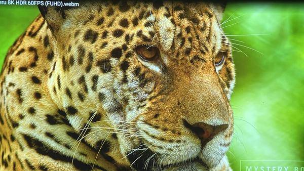 可以看到,动物的胡子、毛发纹理清晰可见,蝴蝶和花朵的色彩还原也和原图相似,实测证实当贝F6可以轻松解码8K视频,呈现出的画面也更加的清晰、真实。