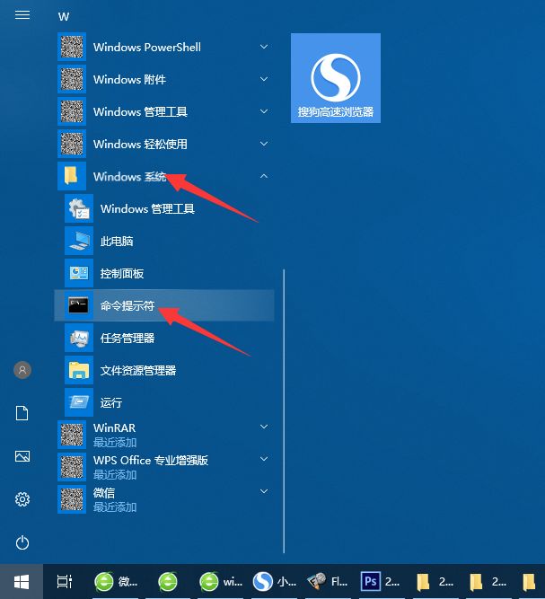 1、点击开始菜单,找到windows系统,单机找到命令提示符,输入“regedit”打开注册表。