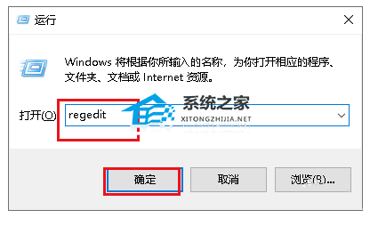 2、弹出对话框,输入regedit,点击确定。
