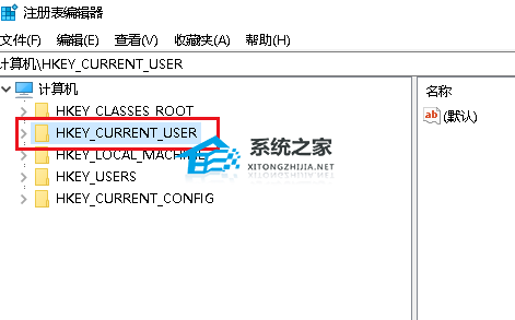 3、弹出对话框,展开HKEY_CURRENT_USER项。