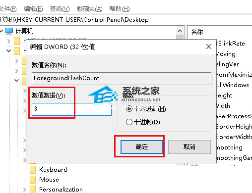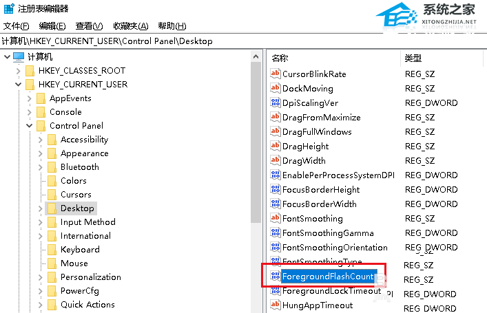 6、在右侧找到ForegroundFlashCount,双击打开。