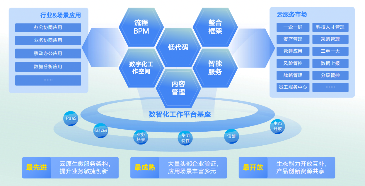 基于蓝凌MK数智化工作平台6大核心能力,将行业领先的门户、BPM流程、低代码等技术融入到合同、费控、项目等多业务场景,实现高效整合与优化,提升管理效能。