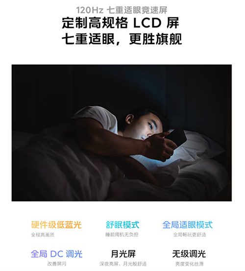 iQOO Z7采用120Hz七重护眼竞速屏,支持HDR10、100% DCI-P3色域、120Hz七挡变速高刷,观看舒适,通过硬件级低蓝光、舒眠模式、全局护眼模式、全局DC调光、月光屏、无极调光、自适应亮度策略达到七重护眼实力,同时1200Hz瞬时触控采样率、10倍触控分辨率也让这款手机非常适合电竞使用。