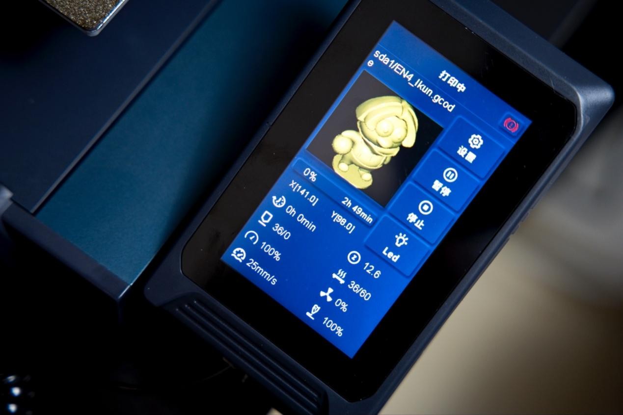 Neptune 4 可以通过局域网的方式连接打印,也可以使用 U 盘读取的方式来传输模型,无论哪种都挺方便的,在插入 U 盘后点击打印选择你想打印的模型,接着 Neptune 4 就会开始预热,250W的热床能够快速加热到110°C,大约 1-2 分钟的预热工作后,就会开始正常打印,所有的信息包括耗时、进度、打印速度等等相关的信息,都能直接在磁吸显示屏中实时更新。