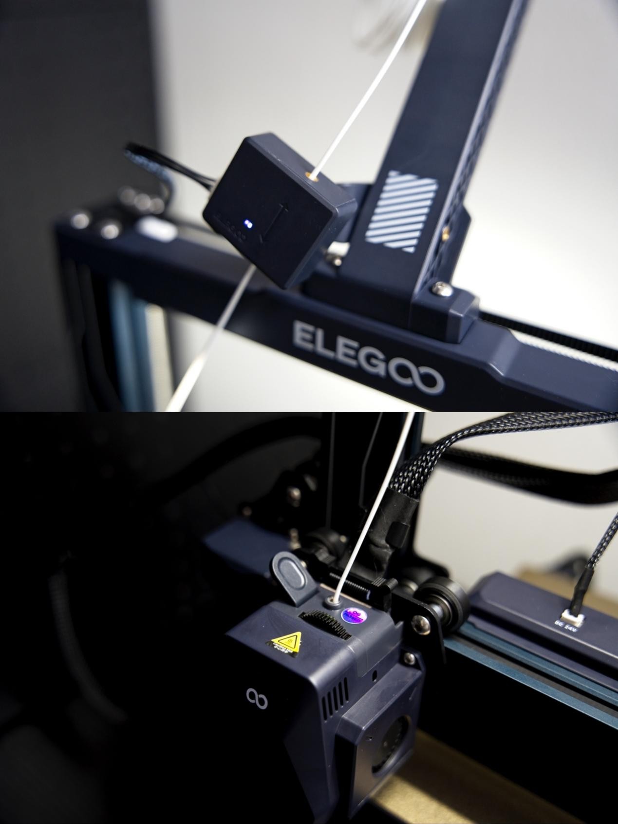 那么 Neptune 4 的「打印体验」如何?打印前需要先将耗材准备好,穿过断料检测器,然后直接连接到打印头上,这样就能够开始打印了。由于Neptune 4支持智能双重保护,支持断电续打+断/缺料检测功能,能够避免在打印过程中意外断电情况下导致模型报废,缺料会自动响应并暂停打印,避免耗材缺失而机器空打的情况,所以可以很放心让它自行打印。