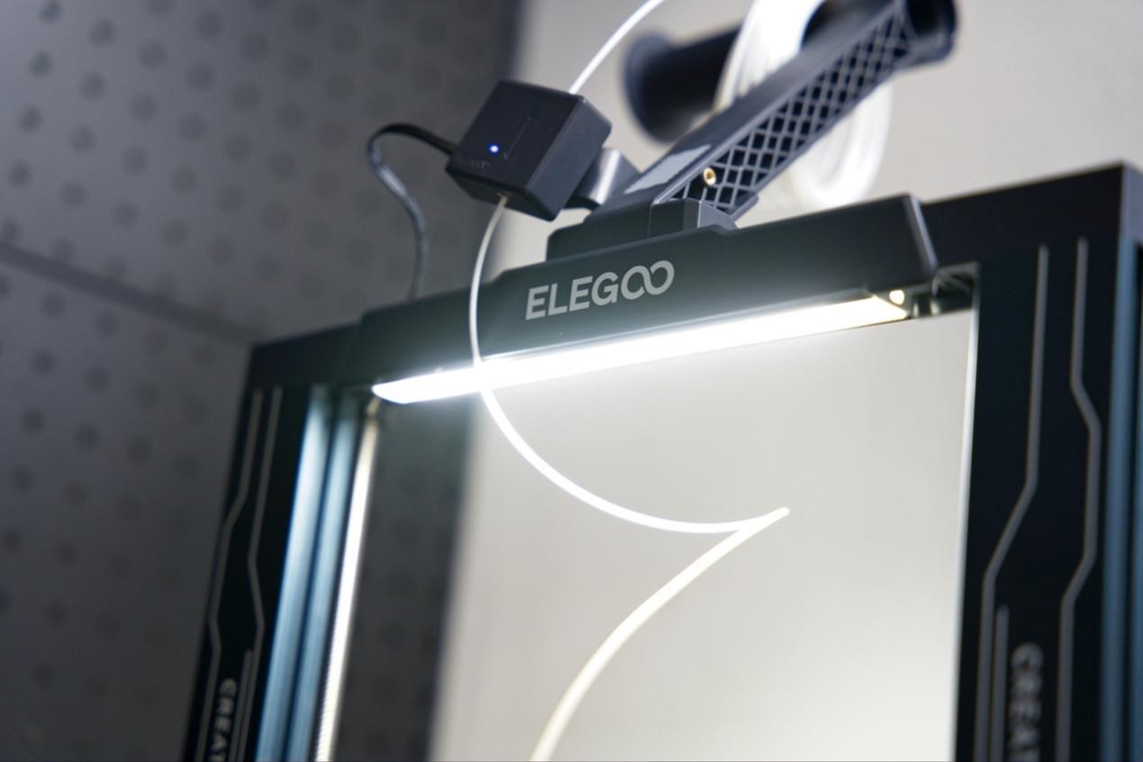 打印时还可以实时观察模型的情况,龙门架顶部配有照明 LED 灯条,30 颗高亮灯珠加上遮光罩,在夜间也能提供非常清晰的照明效果。