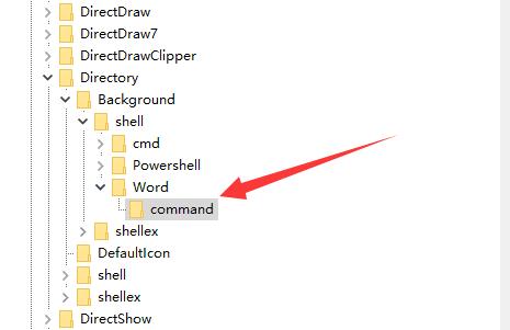 3、然后进入注册表“HKEY_CLASSES_ROOT\Directory\Background\Shell”位置。
