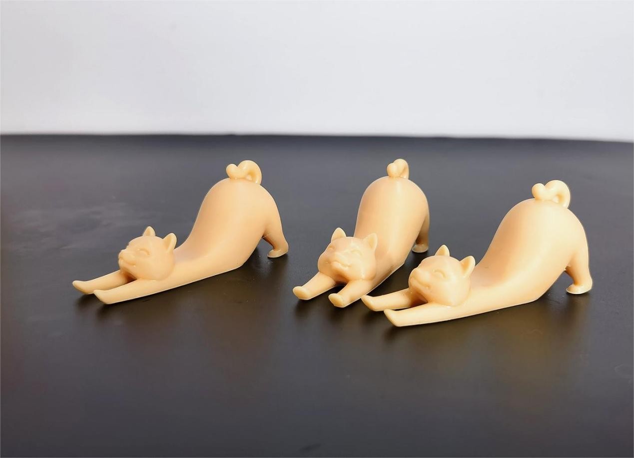 土星3U除了能打印手办摆件,还可以打印有实用价值的3D模型产品,例如手机架。我在网上找到了这个猫咪手机架3D模型之后,一口气就同时打印了三个。