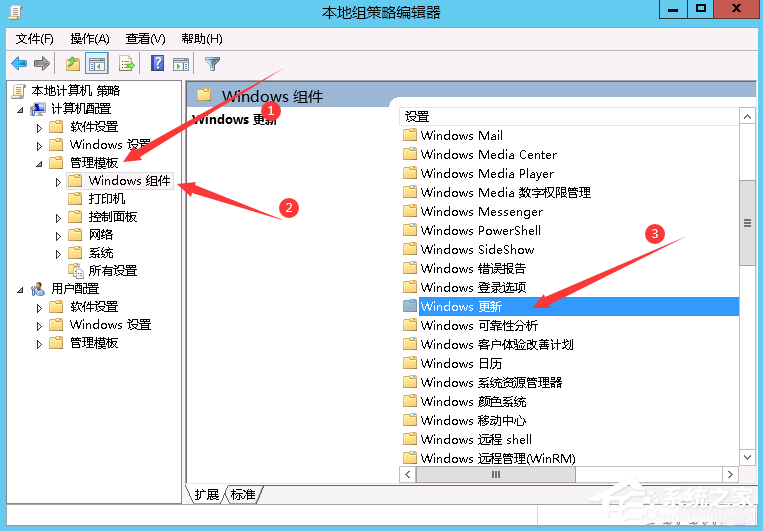 有人看到上面“某些设置由系统管理员进行管理”的文字,以为是空间商没有给自己administrator权限,其实不是,解决方法:Win+R输入gpedit.msc回车→双击计算机配置下面的管理模板→双击Windows组件→双击Windows更新→找到配置自动更新右键编辑→把原来的已启用改为未配置→应用→确定。