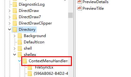 3. 然后依次点击:HEKY_CLASSES_ROOT>Directory>Background>shellex\Contextmenuhandler。