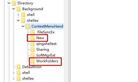 4. 将Contextmenuhandler下方的除了“NEW”和“WorkFolders”之外,其他的都右击删除。