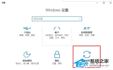 1. 打开Win10设置界面,点击【更新和安全】选项。