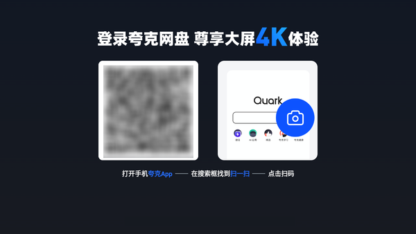夸克网盘TV版界面整洁,可以在电视上观看夸克网盘云里面的视频资源。手机端夸克直接扫码就可以登录,免去了在电视上用遥控器输入的麻烦。