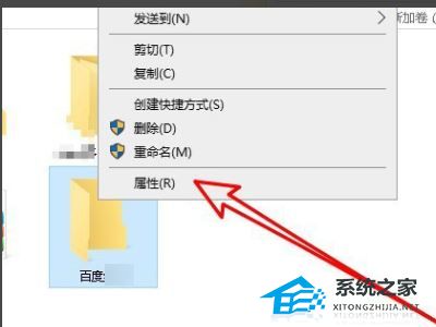 1. 右键点击要打开的文件夹,在弹出菜单中选择“属性”的菜单项。