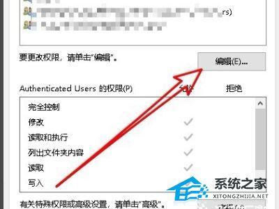3. 接下来在打开的文件夹的安全窗口中点击“编辑”的按钮。