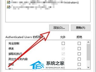 4. 然后在打开的编辑权限页面中点击“添加”按钮。