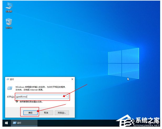 2. 在【运行】窗口输入【gpedit.msc】点击【确定】。