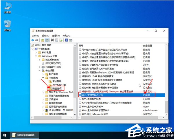 5. 选择【安全选项】,右侧找到【账户:管理员账户状态】。