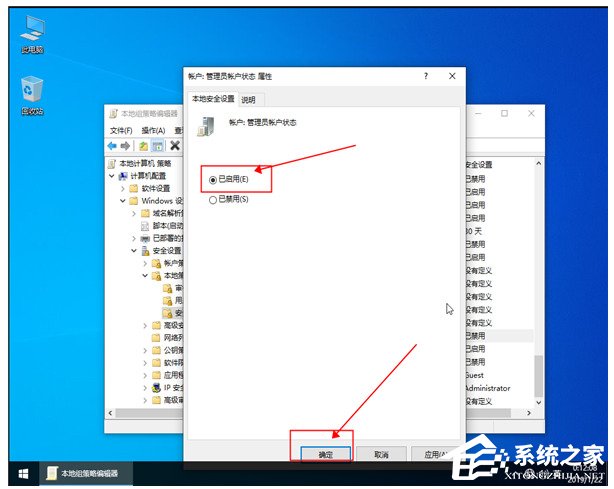 6. 双击【账户:管理员账户状态】打开属性,勾选【已启用】点击【确定】。