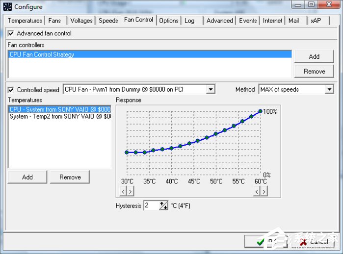 2. 或者进入“Configure”内,微调风扇转数对应的内部温度,使电脑在温控和噪音之间,有个合适的平衡点。