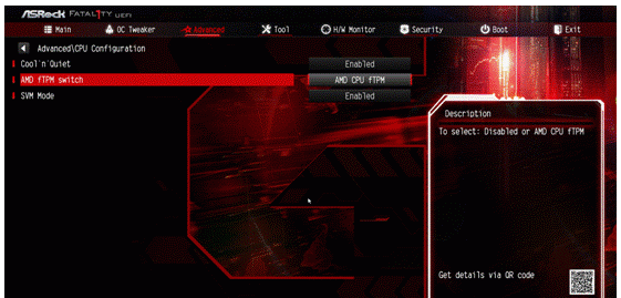 而在AMD平台上,TPM功能被称为AMD fTPM,多数情况下相应的选项同样是放在Advanced/进阶项目,具体位置根据主板的不同会有所差异,但多数都是与CPU有关的置里,找到对应的项目并选为开启即可。