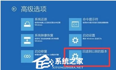 2. 然后在“高级选项”中选择“回退到以前的版本”。
