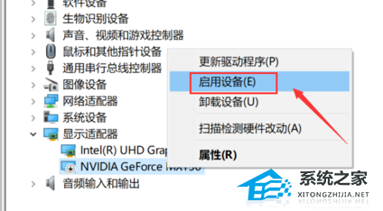 2、点击设备管理器,找到显卡驱动,并禁用需要重新安装的显卡驱动。