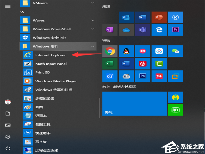 2. 往下拉找到【Windows附件】,这里就可以看到【ie浏览器】。