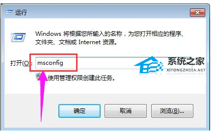 1、同时按下键盘快捷键Win+R,出现的运行界面,输入【msconfig】,接着单击确定。