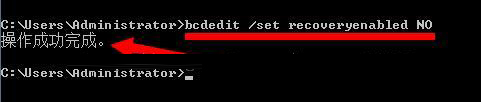 3、在命令提示符窗口中输入“bcdedit /set recoveryenabled NO”,然后单击键盘回车,就可以关闭操作系统开机自动修复功能。