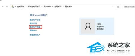3. 选择要更改的账户,然后点击更改账户类型。