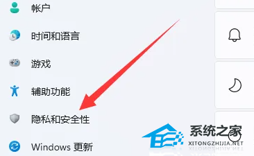 2. 点击左边“隐私和安全性”。