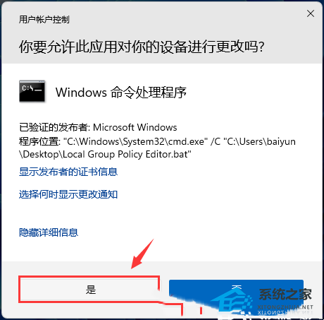 6. 用户账户控制窗口,你要允许此应用对你的设备进行更改吗?点击【是】;