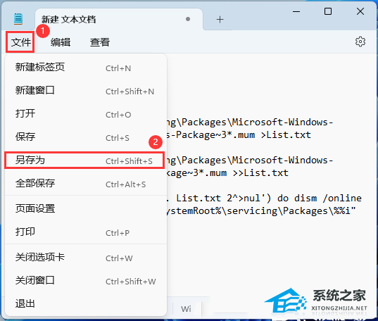3. 接着点击左上角的【文件】,在打开的下拉项中,选择【另存为】,或者按键盘上的【 Ctrl + Shift + S 】快捷键也可以;